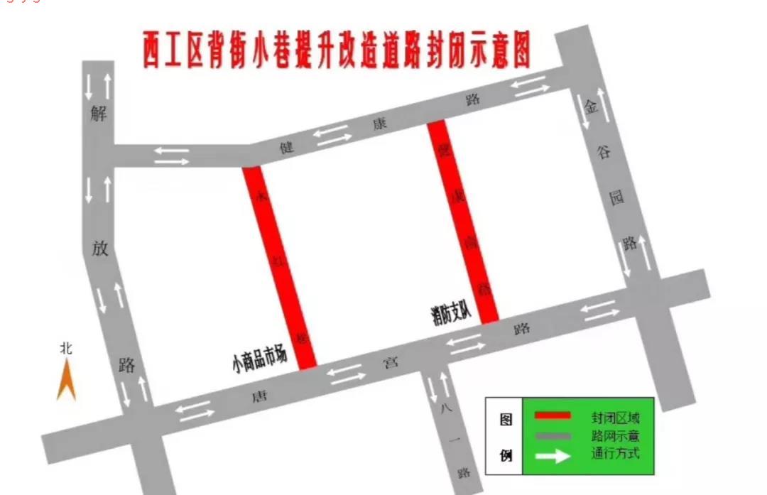 2、封闭的区间:永红巷(唐宫路至健康路段)、健康南路(唐宫路至健康路段)